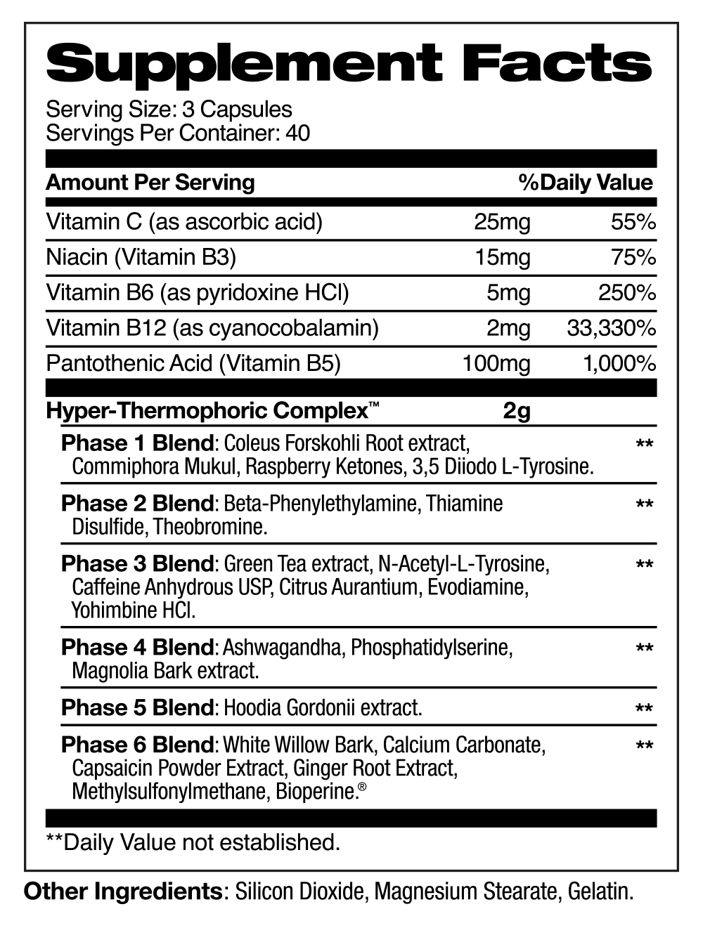 WARNING: Contains 300mg of caffeine per serving. This product is only intended for healthy adults, 18 years of age or older. Keep out of reach of children. Please consult your physician before taking if you have any pre-existing medical conditions or are taking any medication. Do not use if you are pregnant or nursing. Do not use if you are sensitive to caffeine or other stimulants. Discontinue use and consult your healthcare professional if you experience any adverse reaction to this product. Do not use if safety seal is broken or missing. Store in a cool, dry place.