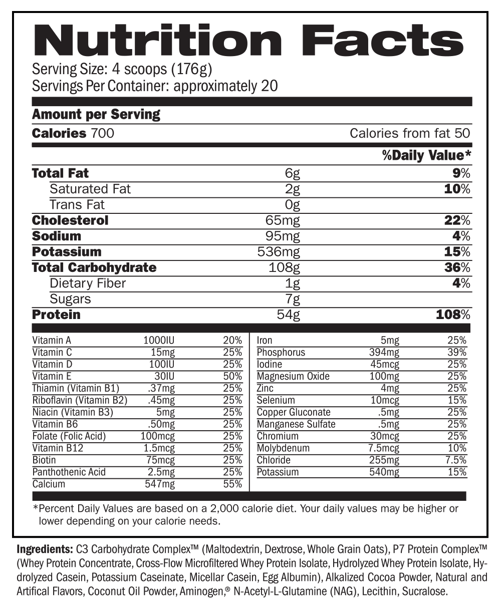 When it’s all about the gains! If you’ve been a regular at this gym thing for a while, you probably already know that to pack on serious size, you need to really up your carbohydrate and protein intake. There’s no way around it. With that individual in mind, Vitasport™ created PROTEIN GAI7NER SYNTHESIS™ which is comprised of a prominent 2:1 carbohydrate to protein ratio blend of P7 Protein Complex™ (Whey Protein Concentrate, Cross-Flow Microfiltered Whey Protein Isolate, Hydrolyzed Whey Protein Isolate, Hydrolyzed Casein, Potassium Caseinate, Micellar Casein, Egg Albumin) and C3 Carbohydrate Complex™ (Maltodextrin, Dextrose, Whole Grain Oats). So shake up a serving of this powerhouse protein gainer and get on board the gain-train!